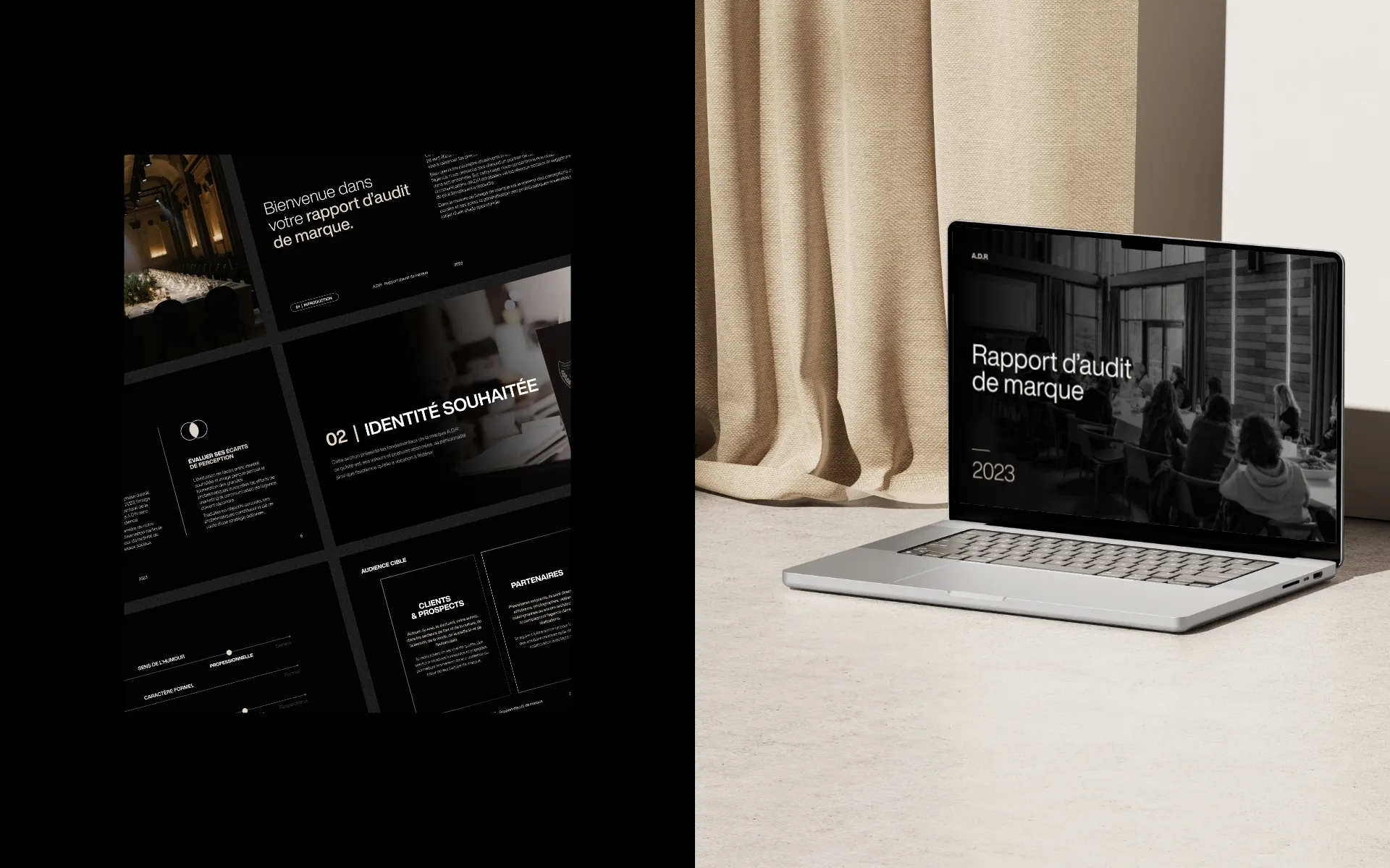 Un audit visuel et éditorial a ensuite été mené, afin d’analyser la manière dont l’agence se présentait sur ses supports, et d’identifier les leviers permettant de renforcer sa lisibilité. Il en ressort une volonté claire de mieux incarner son expertise et d’affirmer une parole plus cohérente, sans céder à la standardisation.